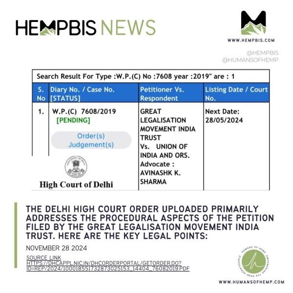 The Delhi High Court order uploaded primarily addresses the procedural aspects of the petition filed by the Great Legalisation Movement India Trust. Here are the key legal points: